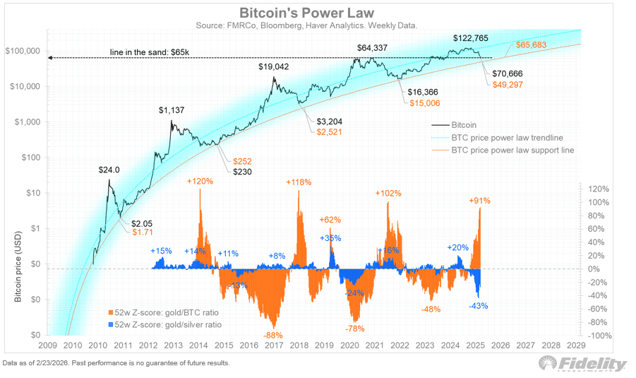 Laut der Analyse von Jurrien Timmer, Director of Global Macro bei Fidelity Investments, sollte Bitcoin aktuell zumindest in der Nähe eines Bodens liegen.