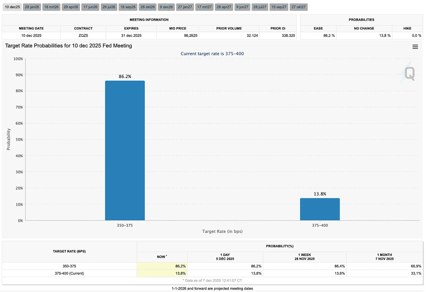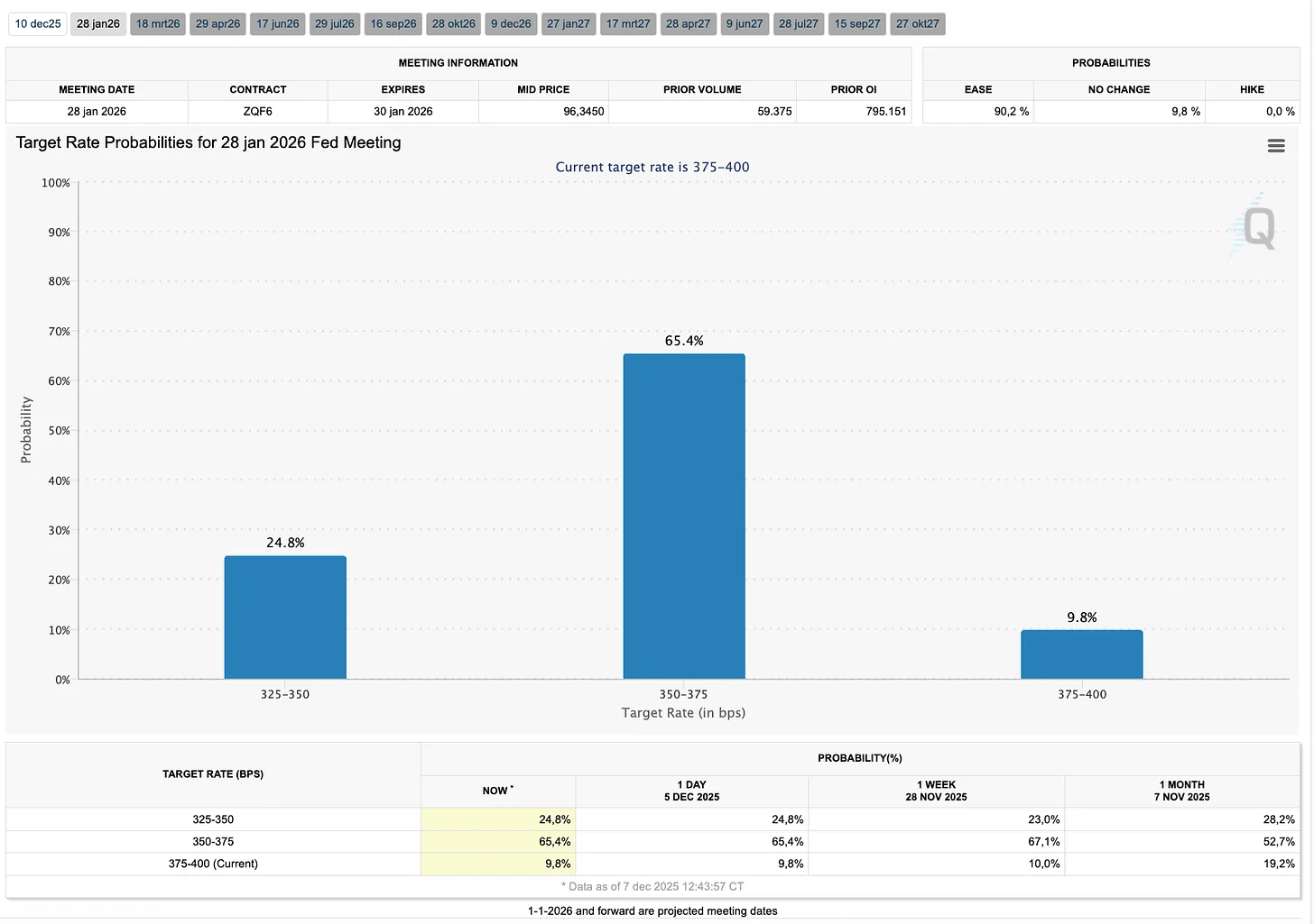Aktuell sieht der Markt eine Wahrscheinlichkeit von 24,8 Prozent für das Szenario, dass die US-Notenbank sowohl im Dezember als auch im Januar die Zinsen senkt. Für den Moment scheint eine Pause im Januar das wahrscheinlichste Szenario zu sein, doch die Rede von Powell könnte hier viele Änderungen bringen.