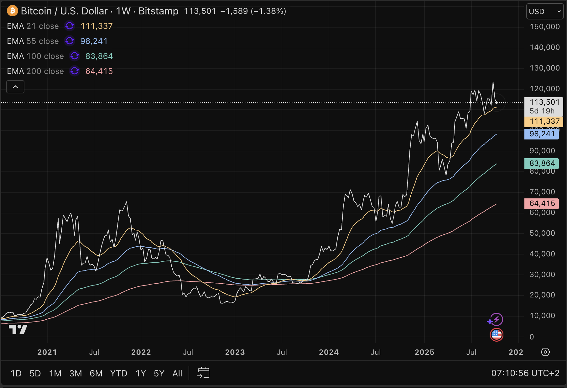 Dennoch eröffnet der Bitcoin-Kurs heute im Minus. Über die vergangenen 24 Stunden steht für die Digitalwährung ein Rückgang von 1,21 Prozent zu Buche. Damit notiert Bitcoin bei 113.368 Dollar.