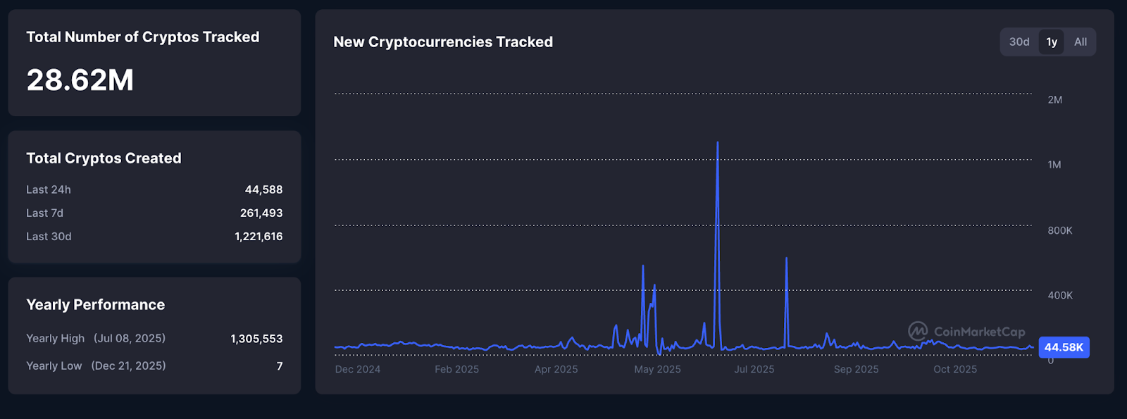Der Kryptomarkt erlebte 2025 eine beispiellose Flut neuer Token. Laut CoinMarketCap wurden in diesem Jahr über 22 Millionen neue Kryptowährungen eingeführt. Insbesondere der Aufstieg von Meme-Coins und benutzerfreundlichen Plattformen wie Pump.fun haben dieses explosive Wachstum verursacht.