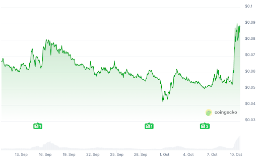 Der Zora-Kurs ist in den vergangenen 24 Stunden um satte 67 Prozent gestiegen auf fast 0,089 US-Dollar. Dank dieses explosiven Anstiegs zählt Zora zu den am schnellsten steigenden Kryptowährungen des Tages.