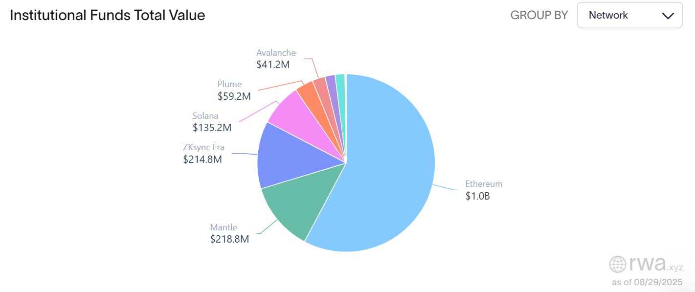 Ethereum bleibt das dominierende Netzwerk für tokenisierte Fonds. Derzeit sind Werte in Höhe von 1 Milliarde Dollar auf dem Ethereum-Netzwerk, was mehr als die Hälfte des Gesamtmarktes ausmacht. Mantle und ZKsync folgen mit jeweils über 200 Millionen Dollar, während Solana 135 Millionen Dollar repräsentiert. Kleinere Akteure sind Plume und Avalanche mit jeweils 59 und 41 Millionen Dollar.