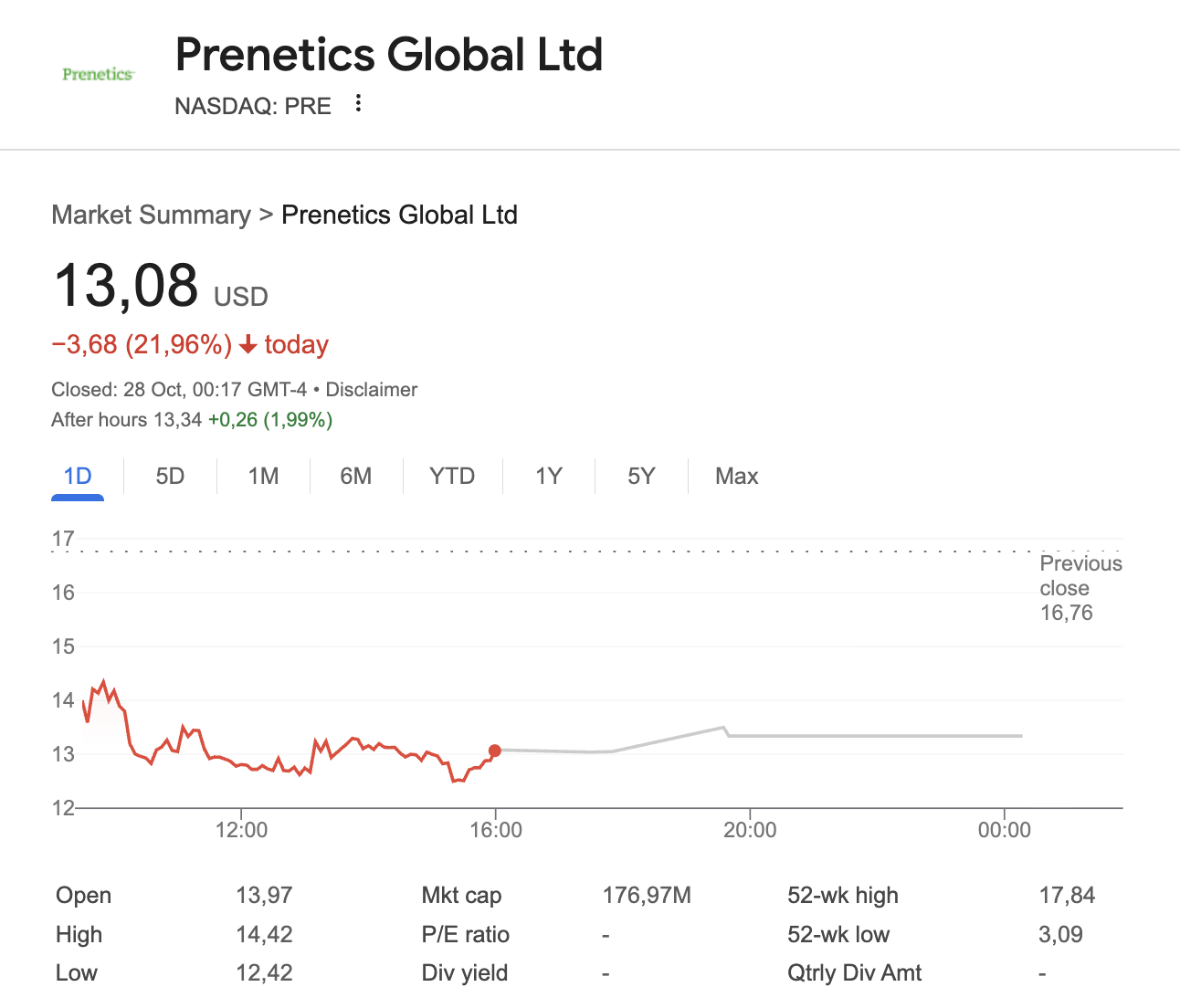 Trotz der positiven Entwicklungen fiel die Prenetics-Aktie am Montag laut Daten von Yahoo Finance um fast 22 Prozent auf 13,08 US-Dollar. Im nachbörslichen Handel erholte sich der Kurs jedoch um 4,5 Prozent. Auf Sicht von sechs Monaten liegt die Aktie trotz eines Rückgangs von gut 19 Prozent in der vergangenen Woche weiterhin über 160 Prozent im Plus.