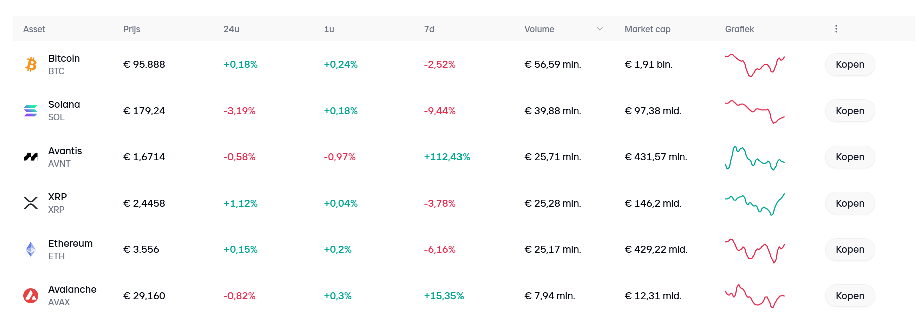 Auf der Handelsplattform Bitvavo ist Avantis (AVNT) derzeit die dritthäufigste gehandelte Kryptowährung mit einem Handelsvolumen von fast 26 Millionen Euro am letzten Tag. Damit übertrifft es sowohl XRP als auch Ethereum, die zweit- und viertgrößten Kryptos auf dem Markt. Nur Solana (SOL) und Bitcoin (BTC) werden derzeit mehr gehandelt.