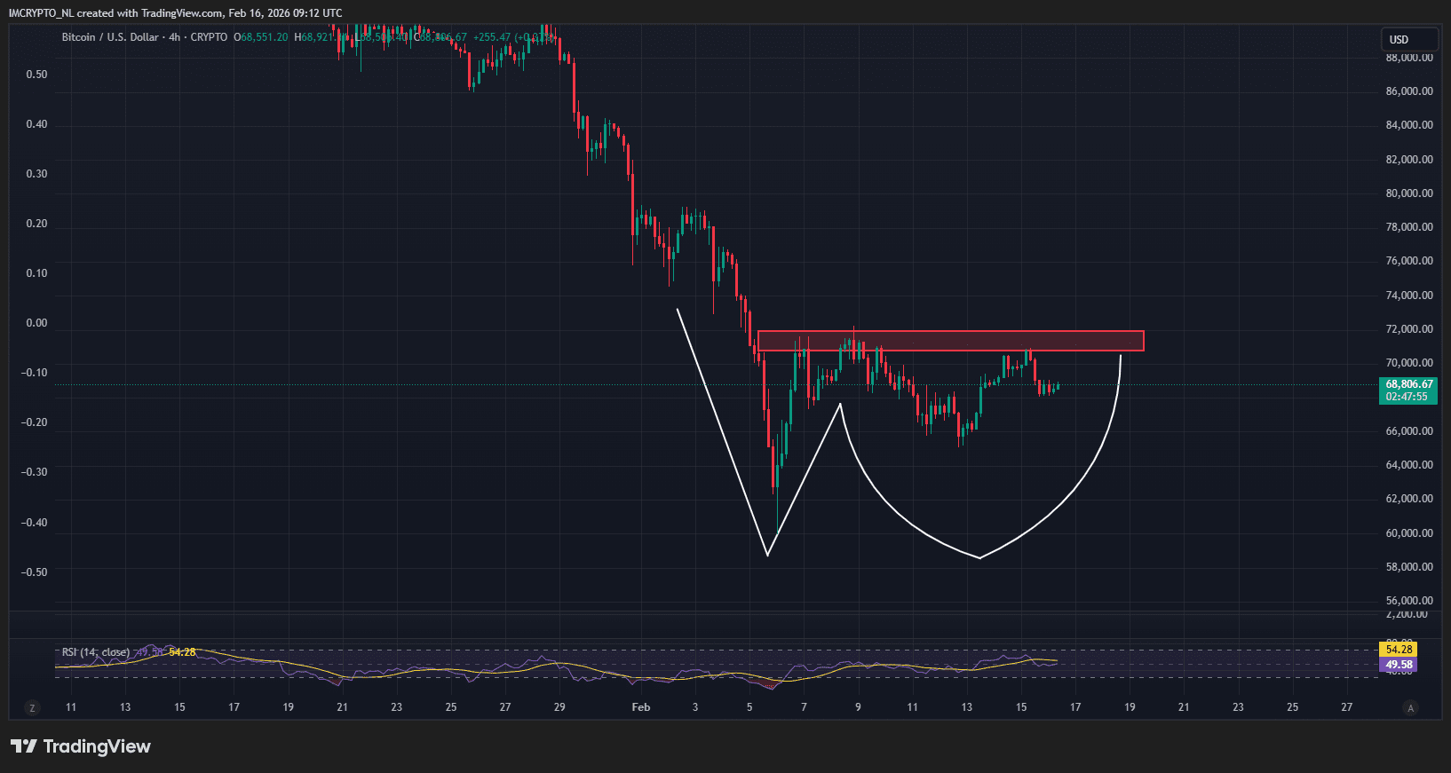 Anfang dieses Monats erlebten wir zunächst einen scharfen Rückgang auf 60.000 Dollar, das tiefste Niveau seit November 2024. Das ist das ‚Adam‘-Muster: ein schneller, spitzer V-Boden.