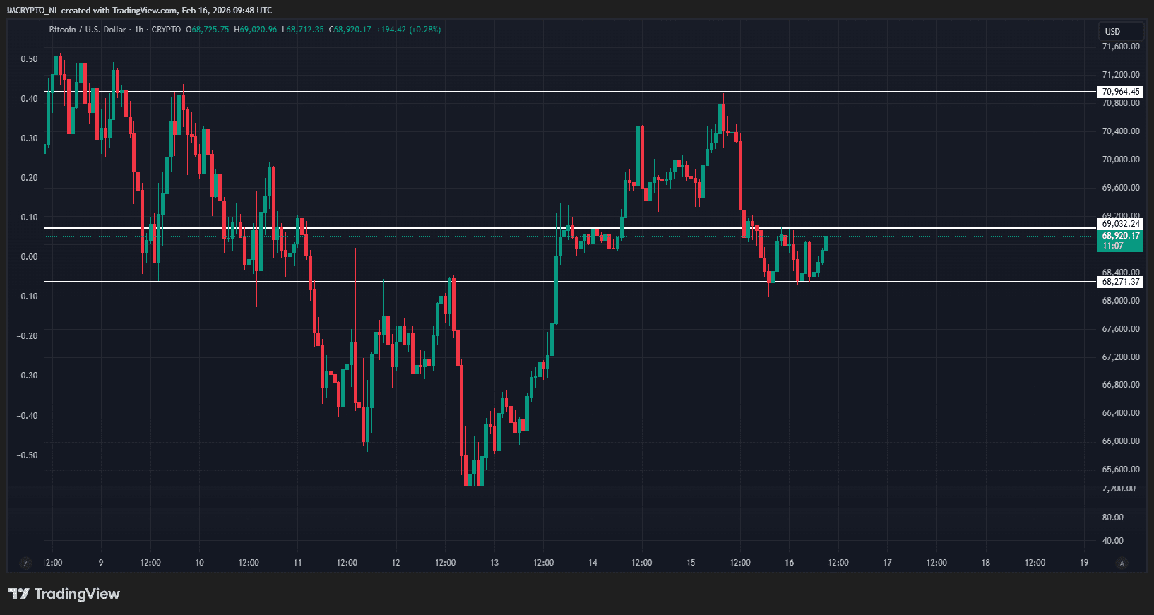 Ein genauerer Blick auf den Stundenchart zeigt, dass 69.000 Dollar das nächste Hindernis darstellt. Dort bewegt sich der Bitcoin-Kurs aktuell.