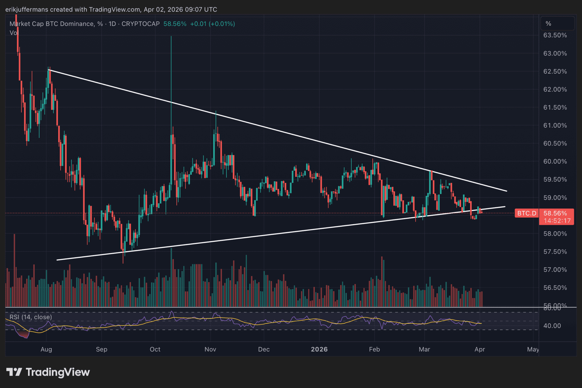 Ein Blick auf die Bitcoin-Dominanz, die den Marktanteil der größten Kryptowährung darstellt.