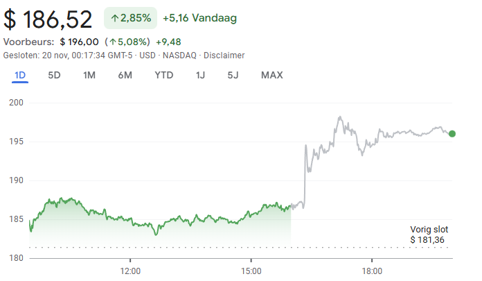 Die Nvidia-Aktie schloss gestern bei 186,52 US-Dollar, kletterte im nachbörslichen Handel jedoch sofort um gut 5 Prozent auf 196 US-Dollar. Der Grund? Zahlen, die die Erwartungen erneut übertroffen haben.