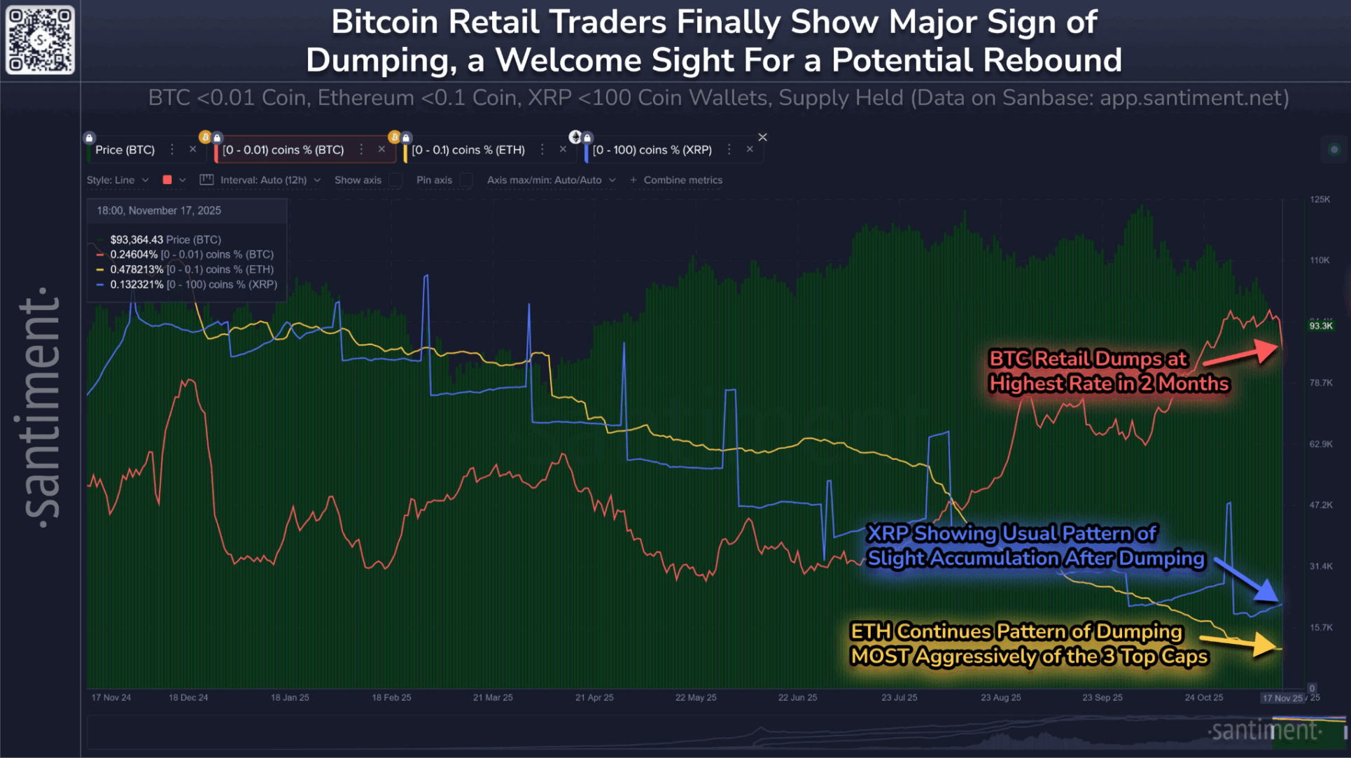 Das Phänomen beschränkt sich nicht auf XRP. Auch bei Bitcoin (BTC) und Ethereum (ETH) hat der Verkaufsdruck unter Kleinanlegern zugenommen. Wallets mit weniger als 0,01 BTC verkauften innerhalb von fünf Tagen 0,36 Prozent ihres Bestands. Bei Ethereum verzeichneten Adressen mit weniger als 0,1 ETH im vergangenen Monat sogar Abflüsse von 0,90 Prozent.