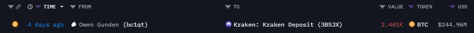 Ein Teil der Bitcoin-Wale hat in der vergangenen Woche Bestände abgestoßen. On-Chain-Daten zeigen unter anderem, dass ein Händler satte 2.400 BTC auf eine Krypto-Börse verschoben hat. Die Transaktion hatte einen Gesamtwert von über 226 Millionen US‑Dollar.