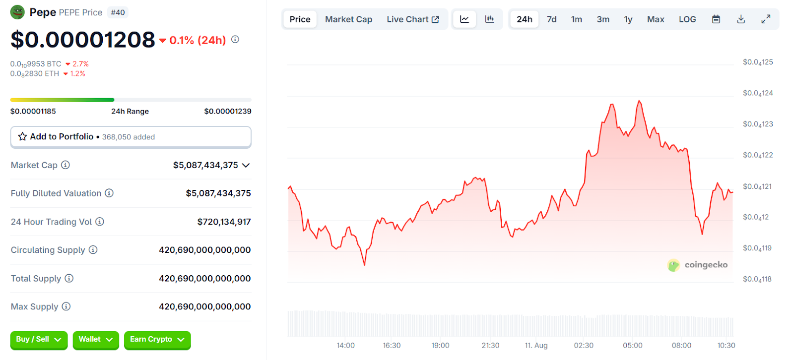 • Pepe Coin (PEPE) bleibt ein bewährter Marktbeweger mit einem kurzfristig bullischen Setup.