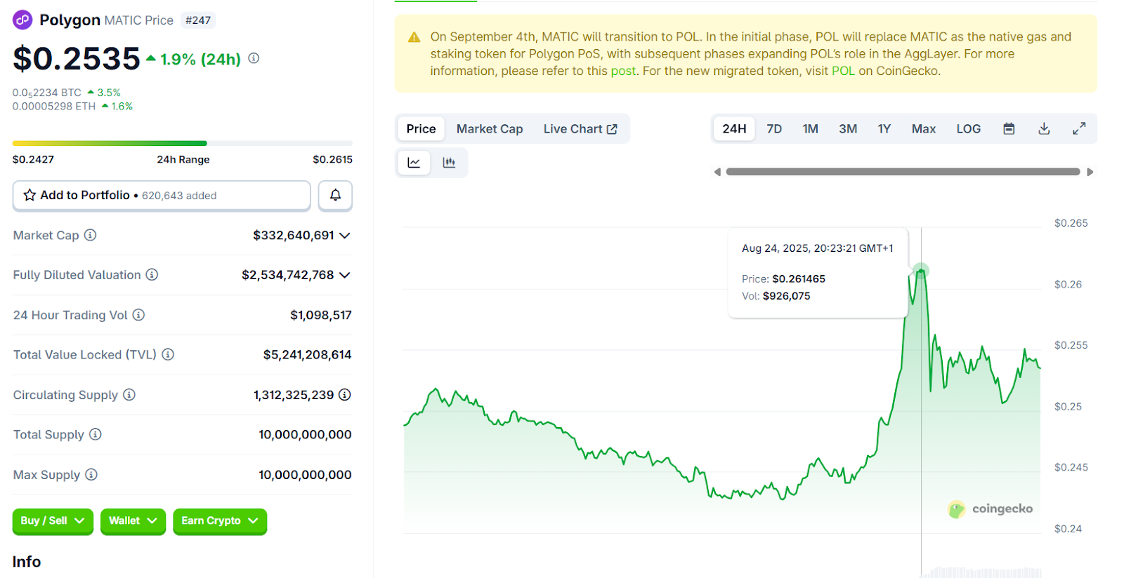 Polygon hat seine alte Haut abgestreift. Mit dem Übergang von MATIC zu POL erfindet sich das Netzwerk als modulares Layer-2-Ökosystem neu. Weit entfernt davon, nur eine weitere Skalierungslösung zu sein, positioniert sich Polygon als Herzstück von Ethereums Zukunft – dort, wo DeFi, NFTs und Unternehmensadoption aufeinandertreffen. Polygon hat über 1,23 Milliarden $ an DeFi-Vermögenswerten in seinem Ökosystem, ein Beweis für seine anhaltende Relevanz in einem zunehmend überfüllten Markt. Auch institutionelle Beteiligung steigt, mit ETFs und Fonds wie Osprey, die Polygon-Exposure integrieren. Entwickler wiederum zeigen starkes Interesse dank modularer Rollups und verbessertem Governance-Modell.