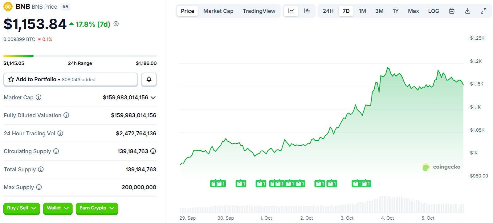 Gleichzeitig haben BNB-Chain-Validatoren die Gasgebühren drastisch gesenkt, sodass Transaktionen nahezu kostenlos sind. In Kombination mit der wachsenden Rolle der BNB Chain bei der Tokenisierung realer Vermögenswerte zeigt BNB weiterhin, warum es in einem Bullenmarkt ein Large-Cap-Kraftpaket ist.