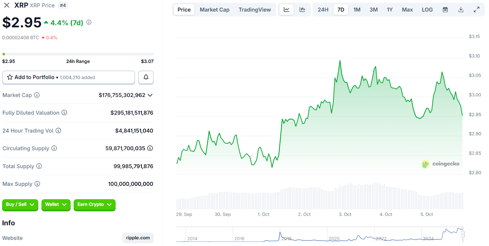 Wale haben in den letzten zwei Wochen rund 1 Milliarde US-Dollar in XRP gekauft und eine starke Unterstützung im Bereich von 2,90–3,00 US-Dollar aufgebaut. Sollte XRP ausbrechen, könnte der Kurs bis Anfang 2026 zwischen 4 und 6 US-Dollar erreichen. Die ETF-Erzählung, die Nachfrage nach sicheren Makroanlagen und die zunehmende Nutzung im Zahlungsverkehr treiben das Wachstum von XRP im Oktober an.