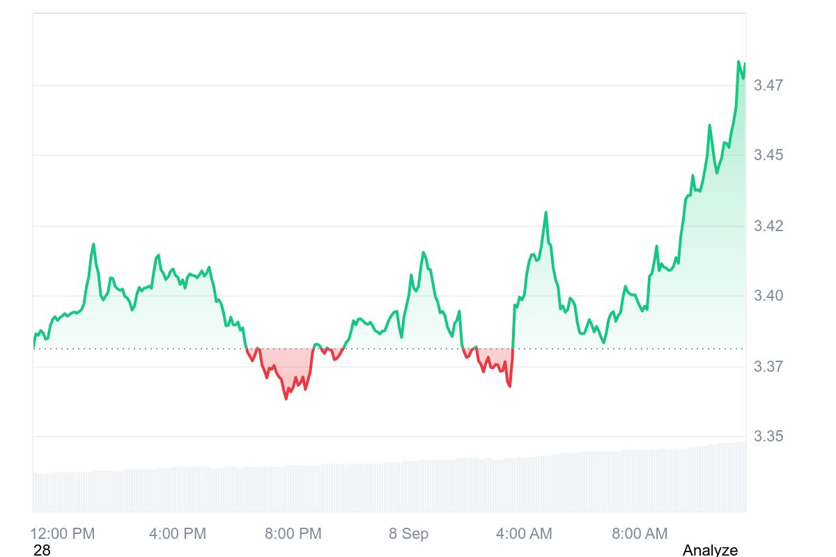 SUI ist am Donnerstag von der 20-Tage-EMA (3,43 $) zurückgefallen, aber die Bullen versuchen, bei 3,26 $ Unterstützung zu bilden. Die Bullen werden versuchen, ihre Position zu festigen, indem sie den Kurs von SUI über die 20-Tage-EMA treiben. Gelingt das, könnte das SUI/USDT-Paar bis zur 50-Tage-SMA (3,64 $) steigen. Dies ist ein entscheidendes Niveau, da ein Ausbruch über die 50-Tage-SMA darauf hindeuten würde, dass sich der Kurs noch einige Zeit zwischen 3,26 $ und 4,44 $ bewegen könnte.