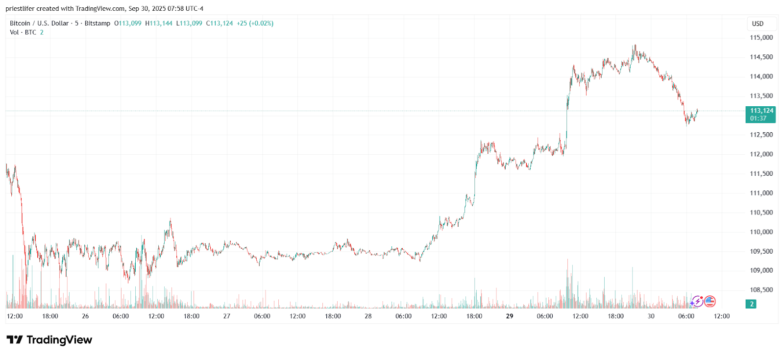 Bitcoin wird aktuell um 113.000 $ gehandelt und bewegt sich in einer engen, aber entscheidenden Spanne. Die Unterstützung hält sich zwischen 111.000 $ und 112.000 $, was den Bullen eine wichtige Verteidigungslinie bietet.