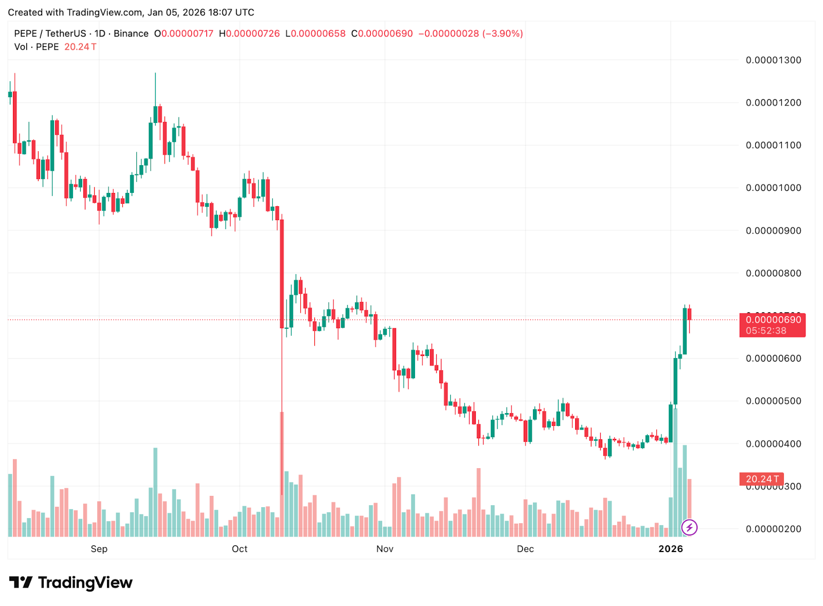 Der Anstieg erfolgt durch wachsende Nachfrage, geopolitische Spannungen, institutionelle Käufe und eine mögliche Angebotsverknappung im Zusammenhang mit Venezuelas BTC-Bestand. - Wie hoch ist der aktuelle PEPE-Kurs?