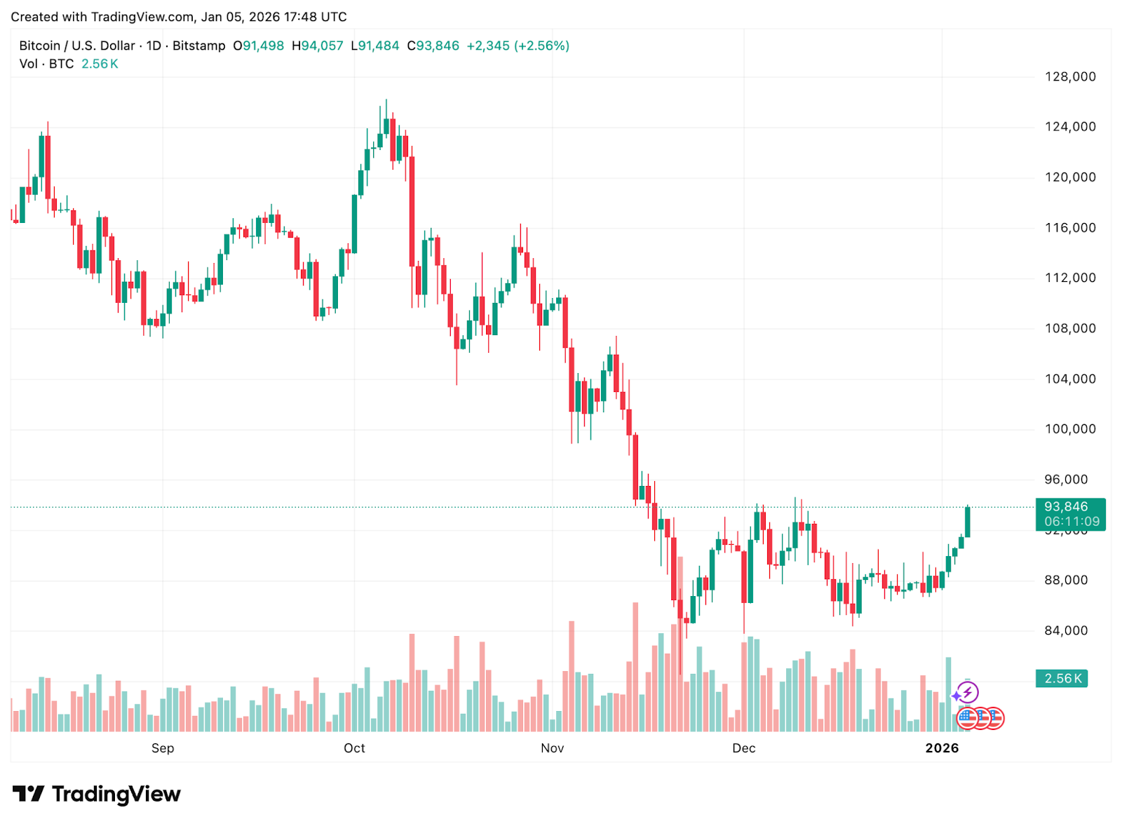 Der Bitcoin-Kurs stieg heute auf 93.408 $ und nähert sich dem wichtigen Widerstand bei 94.000 $. Dieser Ausbruch erfolgte, nachdem Anleger auf bedeutende weltweite Ereignisse reagierten. Berichten zufolge haben die USA den Präsidenten Venezuelas gefasst und Luftschläge in Caracas durchgeführt. In unsicheren Zeiten wie diesen greifen immer mehr Menschen zu Bitcoin als sicherem Hafen – dem „digitalen Gold“.