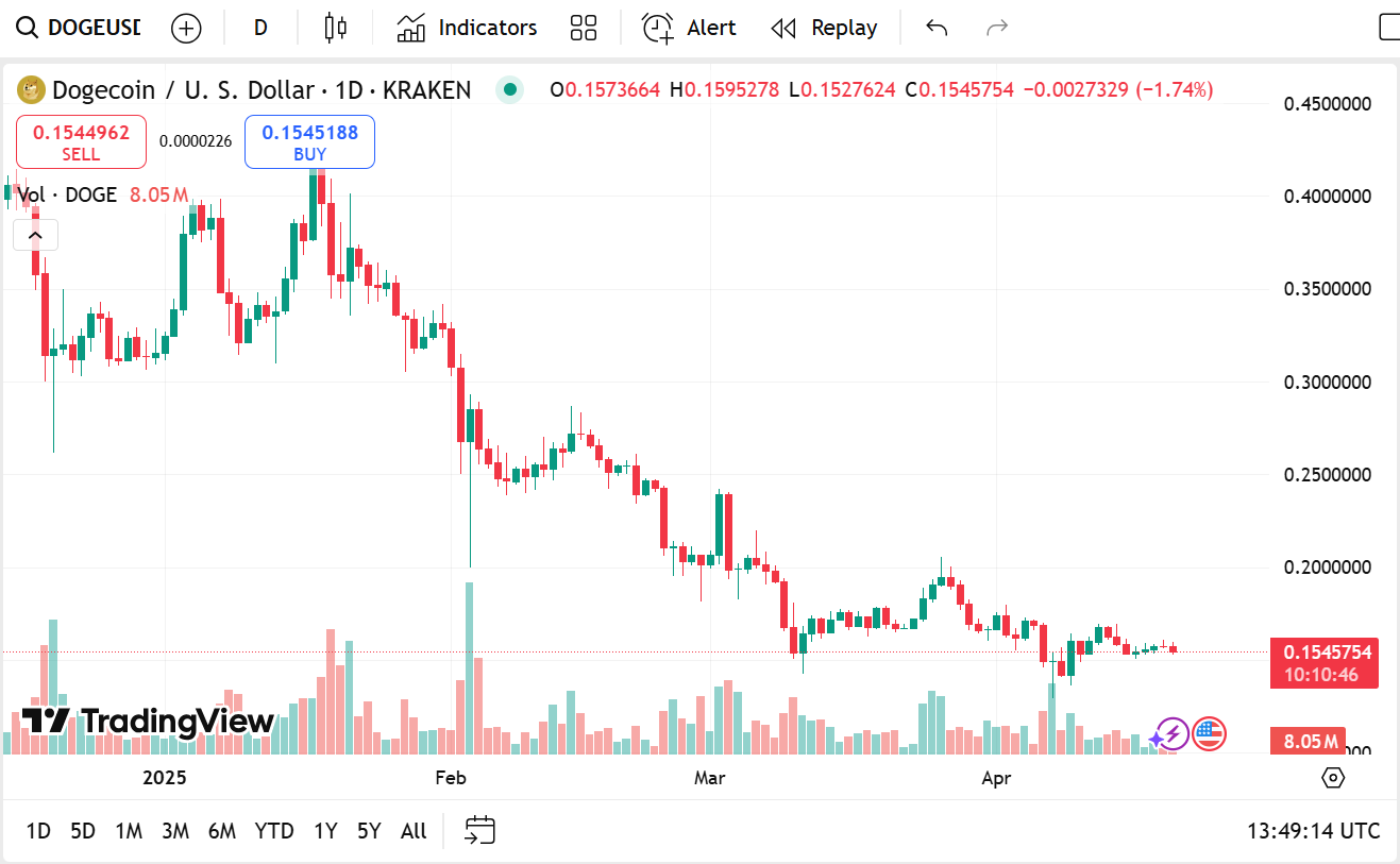 Naast ADA trekt ook Dogecoin de aandacht van investeerders. DOGE daalde met 2,27% tot $0,1543, maar het 24-uurs handelsvolume steeg met 7,3% tot $544,24 miljoen, wat wijst op meer marktactiviteit en hernieuwd optimisme.