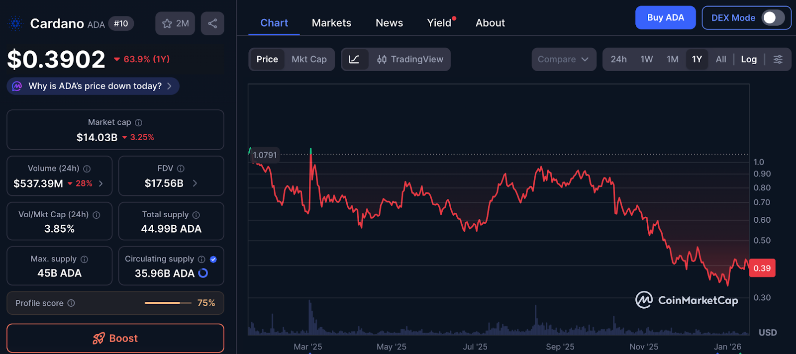 Allerdings liegt der Token trotz dieser stabilen Basis im Jahresvergleich immer noch 60 % im Minus. Ein Großteil des Cardano-Wertes hängt von der zukünftigen Expansion seines Ökosystems ab – ein Prozess, der eher langsam voranschreitet. Für Anleger, die schnelleres Kapitalwachstum anstreben, kann dies einschränkend wirken, auch wenn das Abwärtsrisiko geringer erscheint.