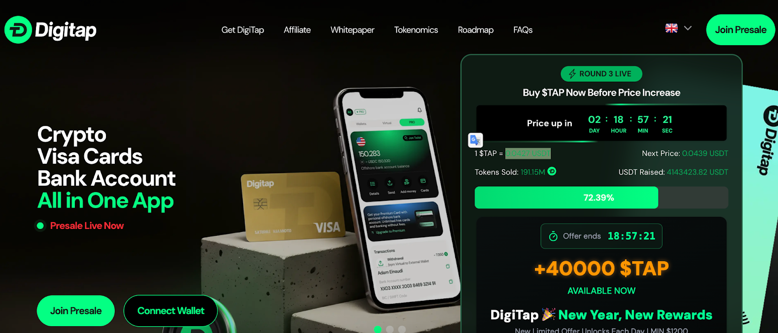 Für Analysten, die nach vielversprechenden Altcoins suchen, kombiniert Digitap reale Anwendung mit Frühphasenpotenzial – und positioniert sich damit als einer der besten Krypto-Kandidaten für 2026. Aktuell liegt der $TAP-Preis noch bei lediglich 0,0427 Dollar.