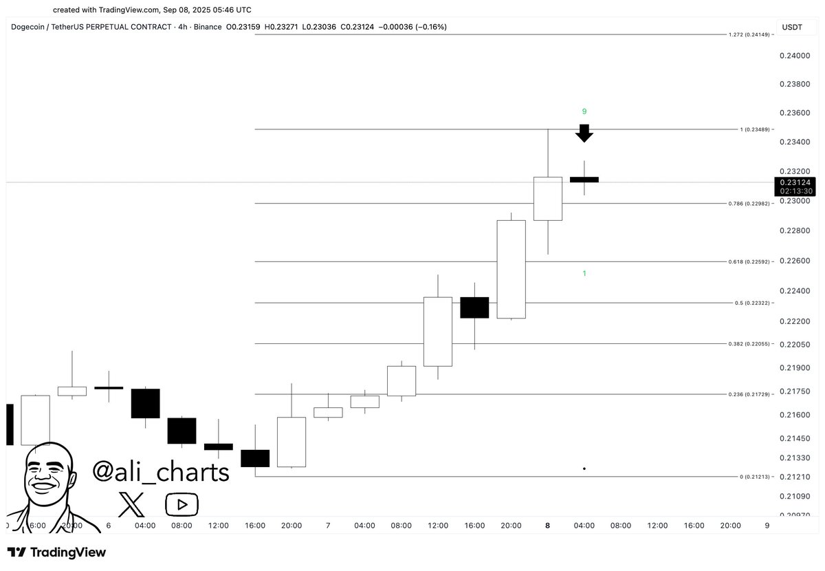 Dogecoin wird nahe 0,231 US-Dollar gehandelt – ein Anstieg von etwa 7 % aufgrund wachsender Optimismen rund um eine mögliche ETF-Genehmigung für DOGE. Das tägliche Handelsvolumen ist auf über 2,6 Milliarden US-Dollar gestiegen.