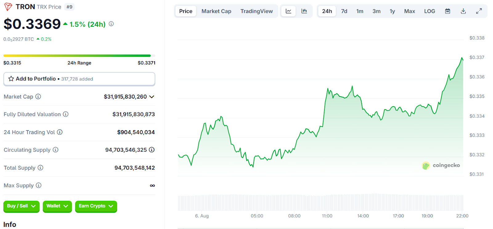 Auf der Adoptionsseite steigt das Interesse von Unternehmen, mit Beispielen wie SRM Entertainment, das TRX übernommen und sich sogar um das Tron-Ökosystem herum neu positioniert hat. Mit wachsendem institutionellem Vertrauen und starker Transaktionsnutzung hat TRX eine solide Grundlage für einen Preisanstieg, sobald die allgemeine Marktdynamik zunimmt.