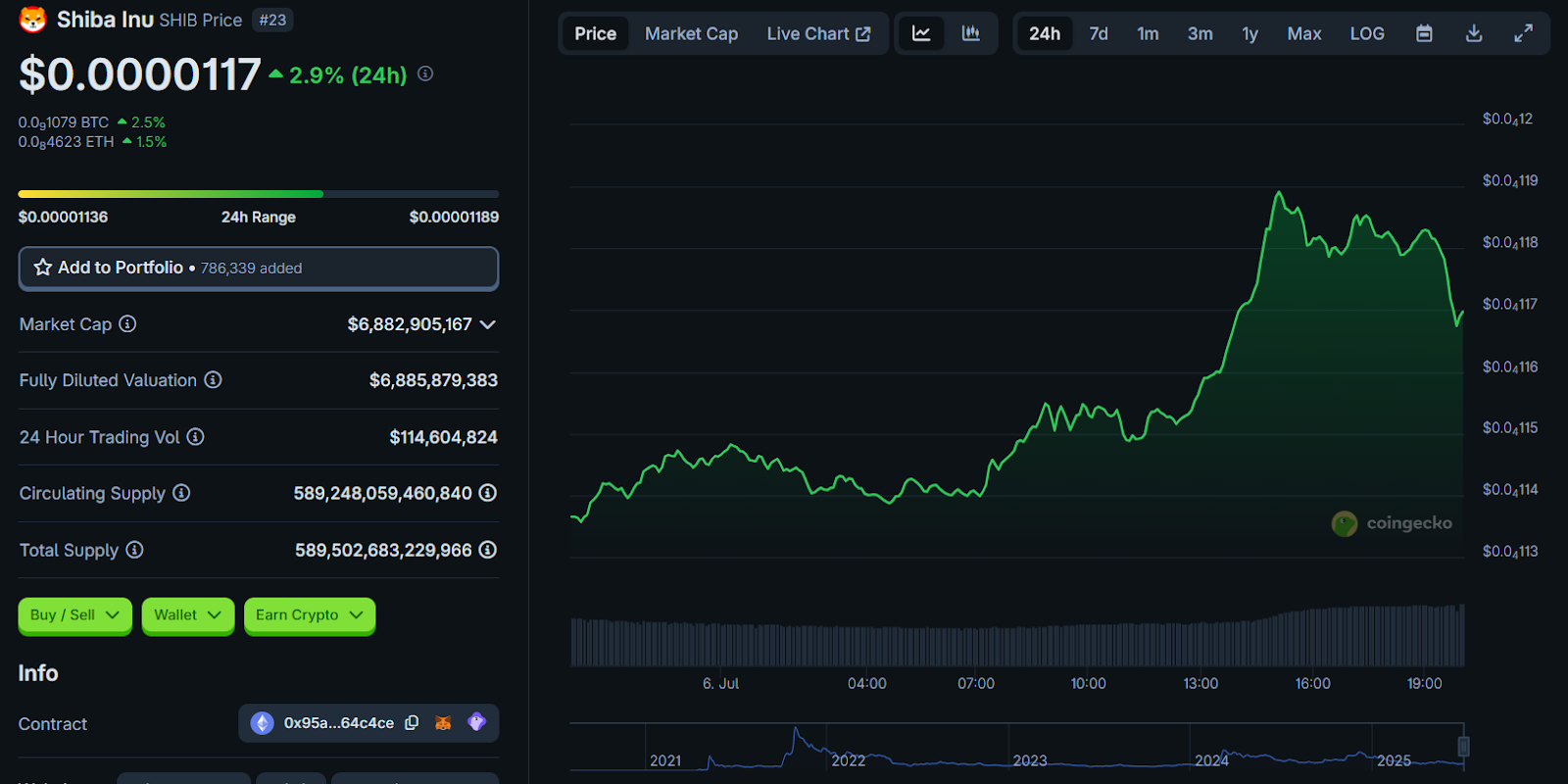 Seit dem Start im Jahr 2020 ist Shiba Inu das Aushängeschild für Meme-Coin-Spekulation. Trotz massiver Token-Burns und Ökosystem-Initiativen wie Shibarium bleibt das riesige Angebot ein zentrales Hindernis. Mit über 589 Billionen Token im Umlauf würde ein Preis von 1 $ die Marktkapitalisierung von SHIB auf astronomische 589 Billionen US-Dollar bringen – mehr als Bitcoin, Ethereum und sogar das BIP der USA zusammen. Selbst wenn das Team 99 % des Angebots verbrennen würde, bräuchte SHIB immer noch eine Bewertung in Billionenhöhe, um auch nur von 1 $ träumen zu können. Kleinere Meilensteine wie 0,0001 $ oder sogar 0,01 $ wären theoretisch möglich – mit extremem Hype und massiven Burns – aber die Mathematik spricht klar gegen den Ein-Dollar-Preis. SHIBs aktuelle Kursentwicklung bestätigt dieses Limit: Der Token wird derzeit bei rund 0,000012 $ gehandelt – also weit entfernt von nur einem Cent. Token-Burns helfen, sind aber langsam und hängen stark von Community-Kampagnen ab, statt von systematischen Lösungen.