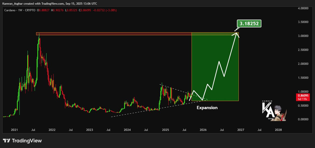 Cardano sorgt wieder für Aufsehen, da der ADA-Kurs heute die Marke von 0,84 $ überschritt – ein Anstieg von 13 %, der die Händler elektrisiert. Das Setup wird mit Cardanos massiver Rallye 2020–2021 verglichen, wobei einige Analysten vermuten, dass sich die Geschichte wiederholen könnte. Cardano-News berichten von starkem Kaufvolumen, was auf erneutes Interesse hindeutet.