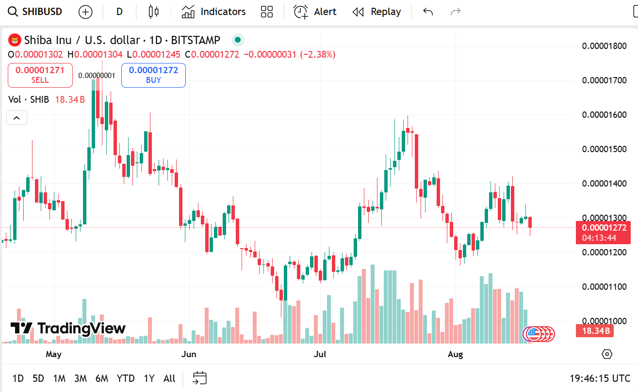 Unterdessen ist auch Shiba Inu gefallen. Der Shiba Inu Coin liegt bei 0,00001264 US-Dollar, was einem Rückgang von 4,18 % entspricht, bei einer Marktkapitalisierung von 7,45 Milliarden US-Dollar. Das tägliche Handelsvolumen erzählt jedoch eine andere Geschichte: Mit einem Anstieg um über 100 % auf 212,37 Millionen US-Dollar zeigt sich sowohl eine spekulative Handelsrunde als auch die Volatilität, die Meme-Coins weiterhin prägt.