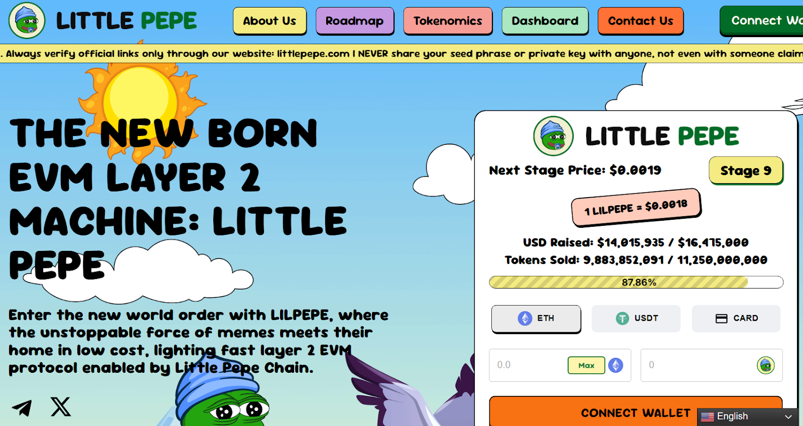 Also, was ist LILPEPE? Es ist eine Meme-Münze, ja – aber viel mehr als das. Entwickelt als nächste Generation einer Layer-2-Memecoin-Blockchain, kombiniert LILPEPE den Humor und die virale Kultur von Meme-Token mit relevanter Technologie: null Steuern, Schutz vor Sniper-Bots, EVM-Kompatibilität und blitzschnelle Transaktionsfinalität. Und die Zahlen? Sie sprechen für sich. Der Token wird derzeit in Phase 9 des Vorverkaufs zu 0,0018 US-Dollar angeboten. Von einem Ziel von 16,47 Millionen US-Dollar wurden bereits über 14 Millionen US-Dollar eingesammelt. Mehr als 9,8 Milliarden Token wurden verkauft. Das sind 87,86 % der Phase 9, was bedeutet, dass ein Preissprung auf 0,0019 US-Dollar unmittelbar bevorsteht. Mit nur 15 Phasen insgesamt und einem Startpreis von 0,0030 US-Dollar könnte jeder, der jetzt kauft, bis zum Zeitpunkt der öffentlichen Notierung Gewinne von 66,6 % erzielen. Aber das ist erst der Anfang. Mehrere Prognosen sagen voraus, dass LILPEPE weit über 0,30 US-Dollar steigen und im nächsten explosiven Bullenlauf sogar 1,20 US-Dollar erreichen könnte. Das ist ein potenzieller 666-facher Anstieg vom aktuellen Preis. Stellen Sie sich diese Art von ROI vor, bevor XRP überhaupt 11 US-Dollar erreicht. Seit dem Eintrag bei CoinMarketCap ist das Interesse an LILPEPE sprunghaft angestiegen. Das Team veranstaltet ein 777.000-US-Dollar-Gewinnspiel, um die Community-Beteiligung zu fördern und Vorverkaufsinvestoren zu belohnen. Zehn glückliche Gewinner werden jeweils 77.000 US-Dollar in Token gewinnen. Und alles, was Sie tun müssen, ist, nur 100 US-Dollar zu investieren und ein paar einfache Aufgaben zu erledigen.