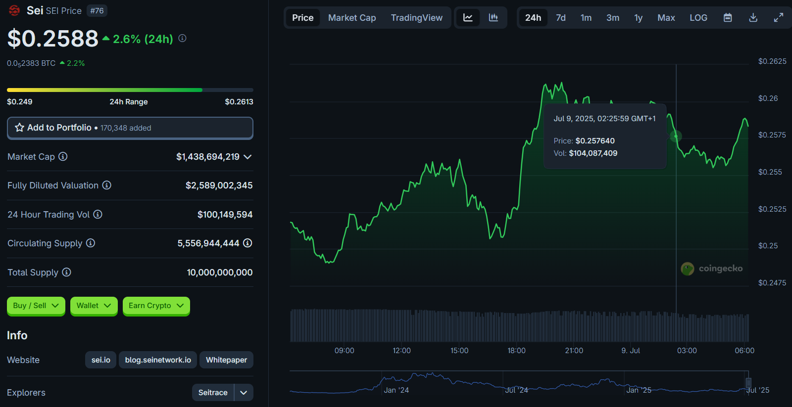 Der zweite Token auf dem Radar des Millionärs ist Sei (SEI) – eine Blockchain, die sich rasant als bedeutender Akteur im DeFi-Bereich etabliert hat. Das Gesamtwertvolumen (TVL) im Sei-Netzwerk überstieg kürzlich 626 Millionen US-Dollar – ein Allzeithoch, das auf explosive Nutzer- und Investoren-Zuwächse hindeutet.