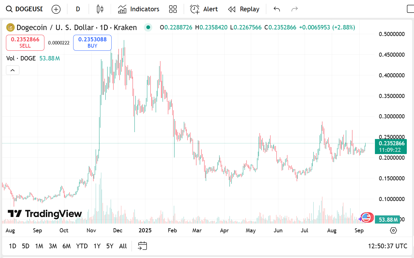 Dogecoin wird derzeit bei 0,2353 US-Dollar gehandelt, ein Anstieg von 7,56 %. Mit einer Marktkapitalisierung von 35,32 Milliarden US-Dollar und einem Handelsvolumen von 3,1 Milliarden US-Dollar zeigt sich, dass der memegetriebene Hype weiterhin für Aktivität sorgt.