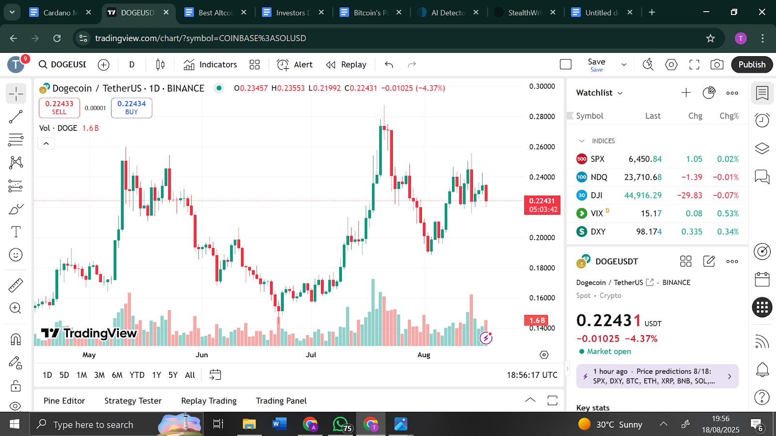 Dogecoin bleibt in einer Spanne zwischen 0,218 und 0,220 US-Dollar gefangen, wobei ein bärischer Ton durch das Unterschreiten des 20-EMA unter den 50-EMA verstärkt wird. Versuche, in Richtung 0,245–0,255 US-Dollar zu steigen, sind ins Stocken geraten, sodass DOGE nahe den aktuellen Niveaus gedeckelt bleibt.