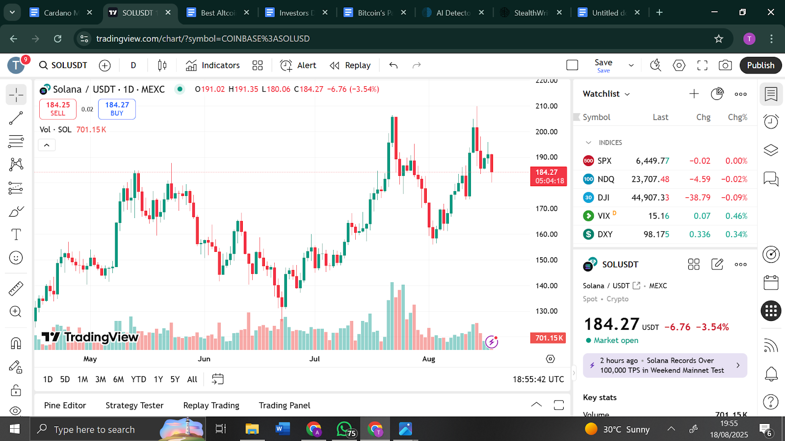 Die Solana-Kursprognose bleibt mittelfristig konstruktiv, solange der Bereich um 170 US-Dollar gehalten wird. Es besteht die Möglichkeit einer Erholung auf 190–200 US-Dollar, falls Käufer im Unterstützungsbereich auftreten. Ein Durchbruch unter 172 US-Dollar könnte den Kurs jedoch in den mittleren Bereich der 150er führen.