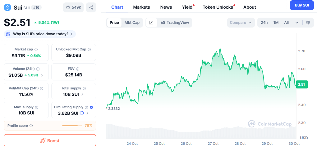 Nach den Nachrichten über die Zinssenkung der Fed stieg der SUI-Preis deutlich an. Der Altcoin wird über 2,5 $ gehandelt und verzeichnet einen Zuwachs von 5 % auf dem Wochenchart. Auch das Handelsvolumen hat zugenommen, und das nächste Ziel der Bullen ist ein erneuter Test von 3,6 $, seinem 30-Tage-Hoch.