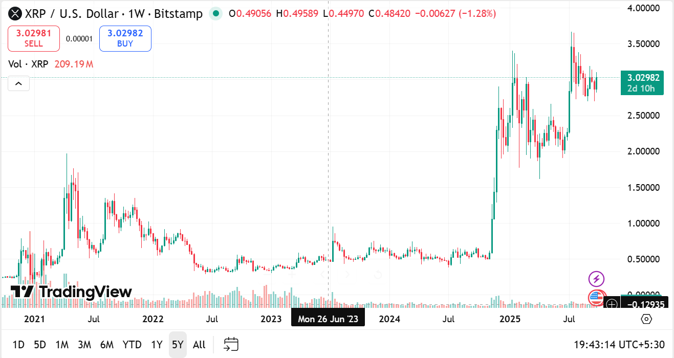 • XRP unter 0,05 $ brachte bis zu 60-fache Gewinne, als der Kurs seinen Höchststand von 3 $ erreichte.