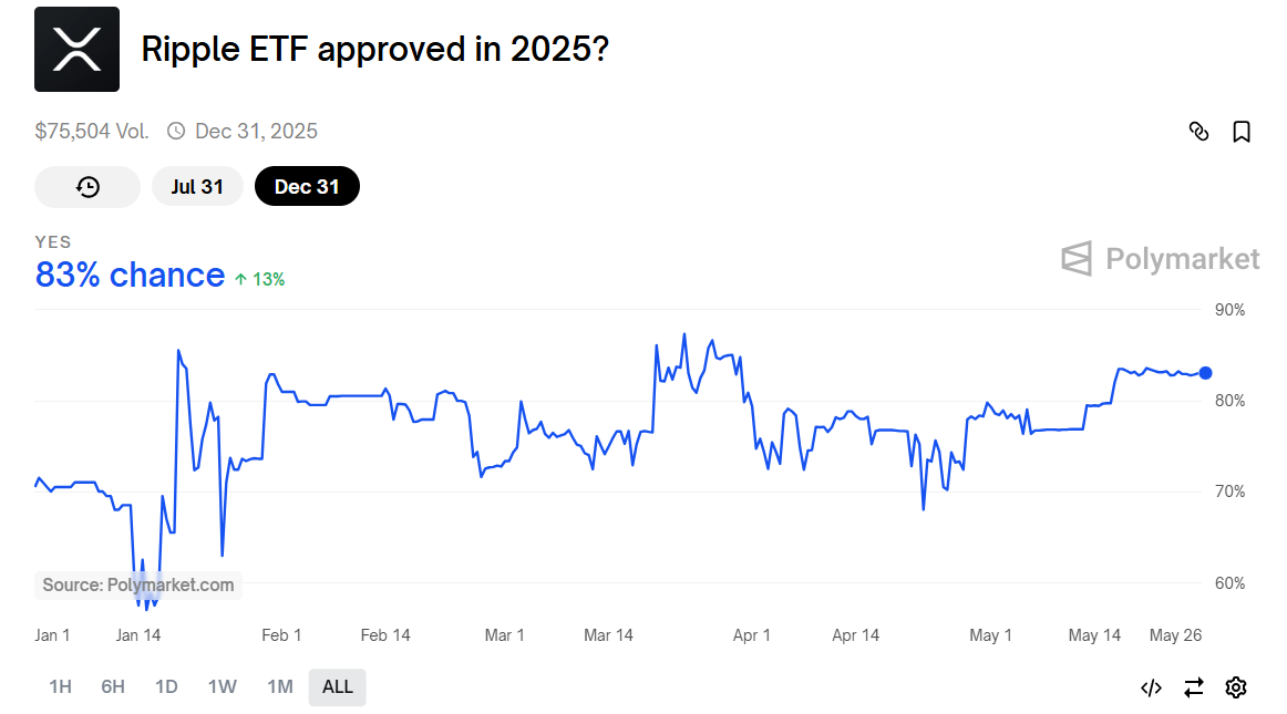 Der XRP-Preis steigt, da die Begeisterung über die mögliche Zulassung eines XRP-ETF im Jahr 2025 wächst. Polymarket beziffert die Wahrscheinlichkeit einer Genehmigung in diesem Jahr auf 83 %. Dieses Vertrauen führt dazu, dass Analysten und Investoren über die künftige Preisentwicklung von XRP diskutieren.