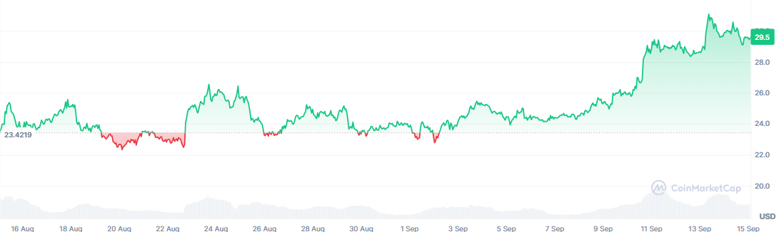 Avalanche hat sich einen starken Ruf als eine der schnelleren und effizienteren Layer-1-Blockchains aufgebaut. Mit einem Kurs von rund 37,20 US-Dollar wächst AVAX weiterhin in den Bereichen DeFi, GameFi und Unternehmenslösungen. Sein Subnet-Modell ermöglicht maßgeschneiderte Blockchains, was Entwickler und Institutionen gleichermaßen angezogen hat.