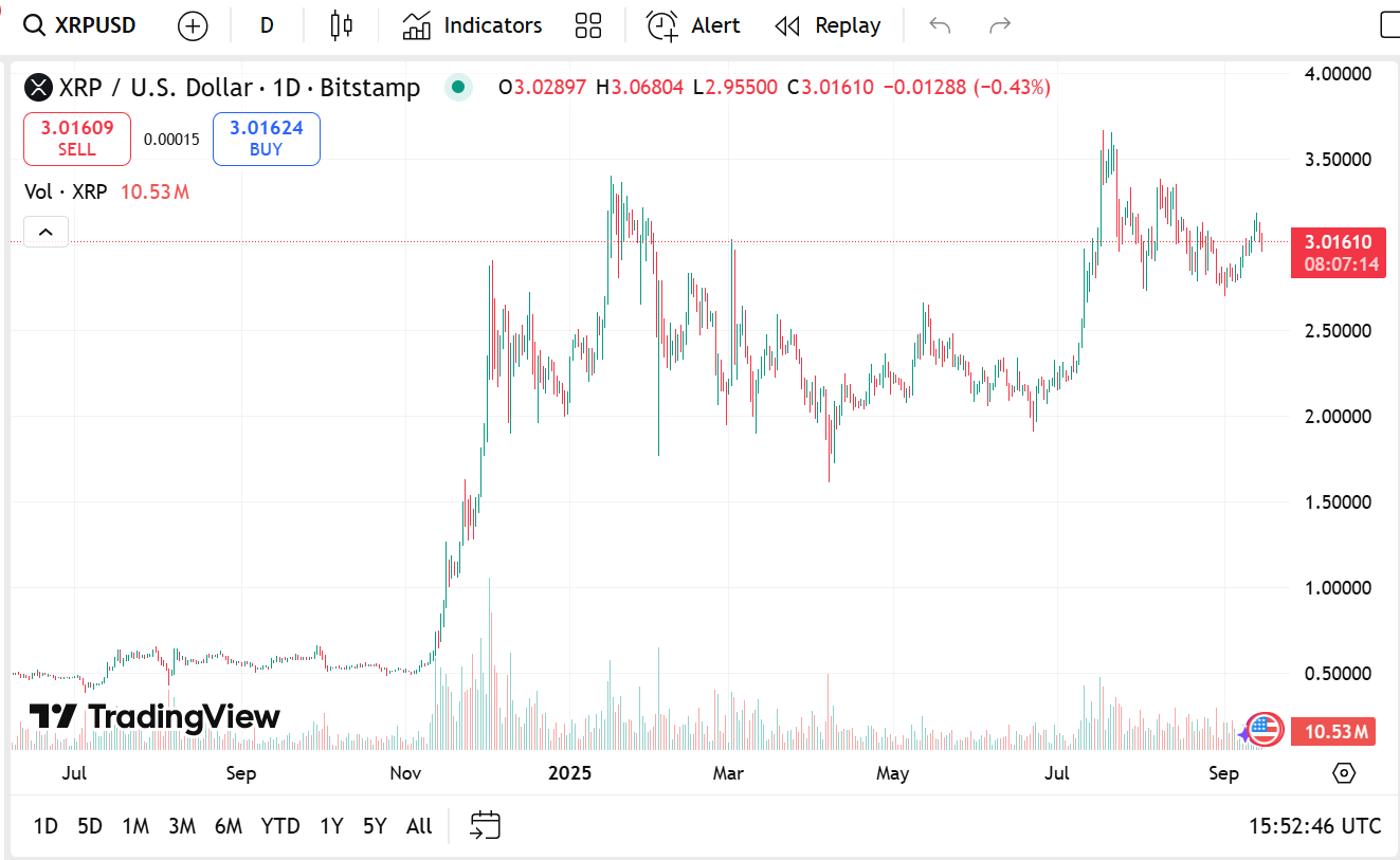 Das Szenario der XRP-Kursprognose bleibt im Rampenlicht, da Ripples nativer Token bei 3,01 $ gehandelt wird – ein Rückgang von 0,45 %. Mit einer Marktkapitalisierung von 179,66 Milliarden $ und einem Handelsvolumen von 5,9 Milliarden $ in den letzten 24 Stunden behauptet XRP weiterhin seinen Platz unter den führenden digitalen Assets.