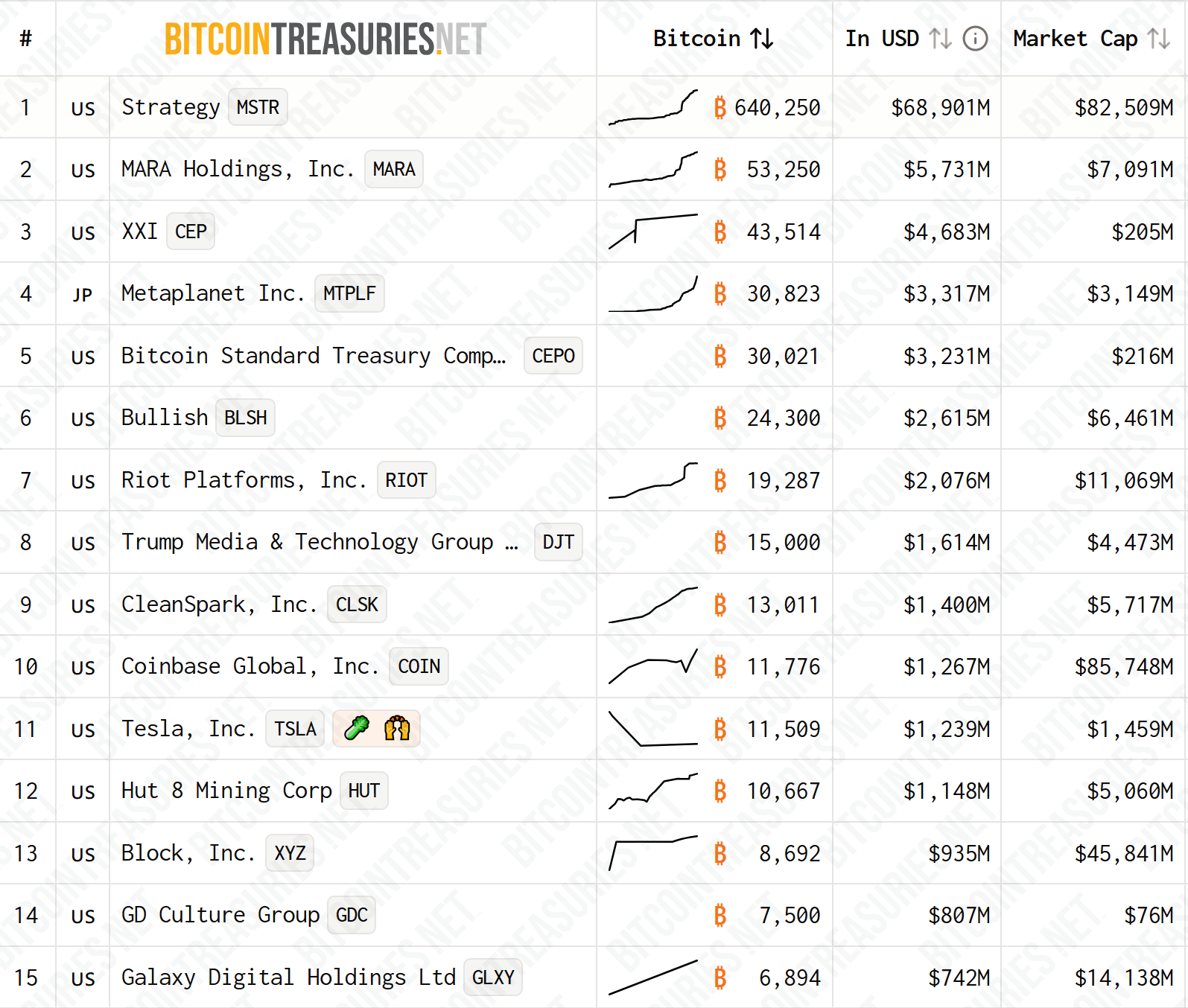 Strategy ist weltweit der größte unternehmensseitige Halter von Bitcoin. Nach dem jüngsten Kauf am 13. Oktober verfügt das Unternehmen über 640.250 Bitcoin – fast 2,5 Prozent des maximalen Angebots von 21 Millionen BTC. Diese Coins erwarb es zu einem durchschnittlichen Bitcoin-Kurs von 66.384 US-Dollar pro Stück.
