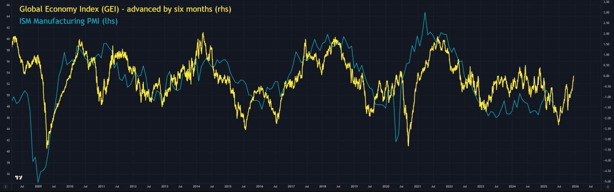 Zwischen Anfang 2023 und dem Beginn von 2025 durchlief der Index einen Mini-Zyklus. Das ist laut Tomas auch eine Erklärung dafür, dass die PMIs niedrig bleiben.