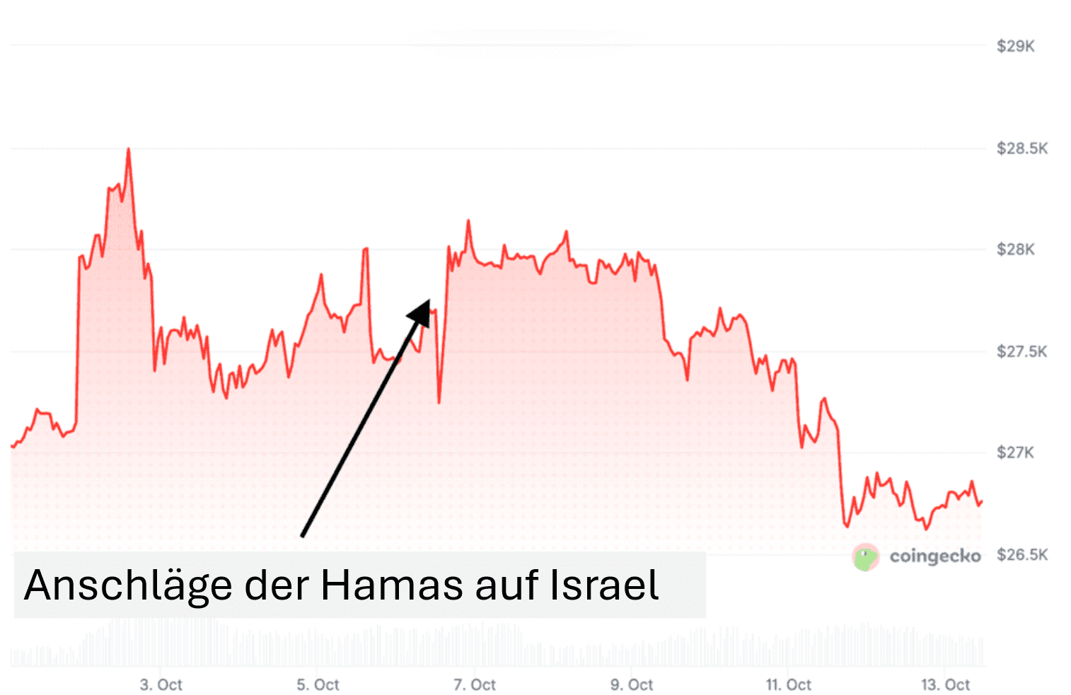 Auch bei jüngeren Konflikten zeigt sich das gleiche Muster. Nach dem Hamas-Angriff auf Israel am 7. Oktober 2023 sank Bitcoin von etwa 28.000 Dollar auf rund 26.500 Dollar. Das ist ein Rückgang von etwa fünf Prozent. Innerhalb weniger Tage erholte sich der Kurs vollständig.