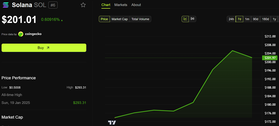 In den letzten sieben Tagen ist Solana um etwa 20 Prozent gestiegen. Damit handelte die Münze seit langer Zeit wieder über der magischen Grenze von 200 Dollar, was die Anleger wieder bullish werden lässt.