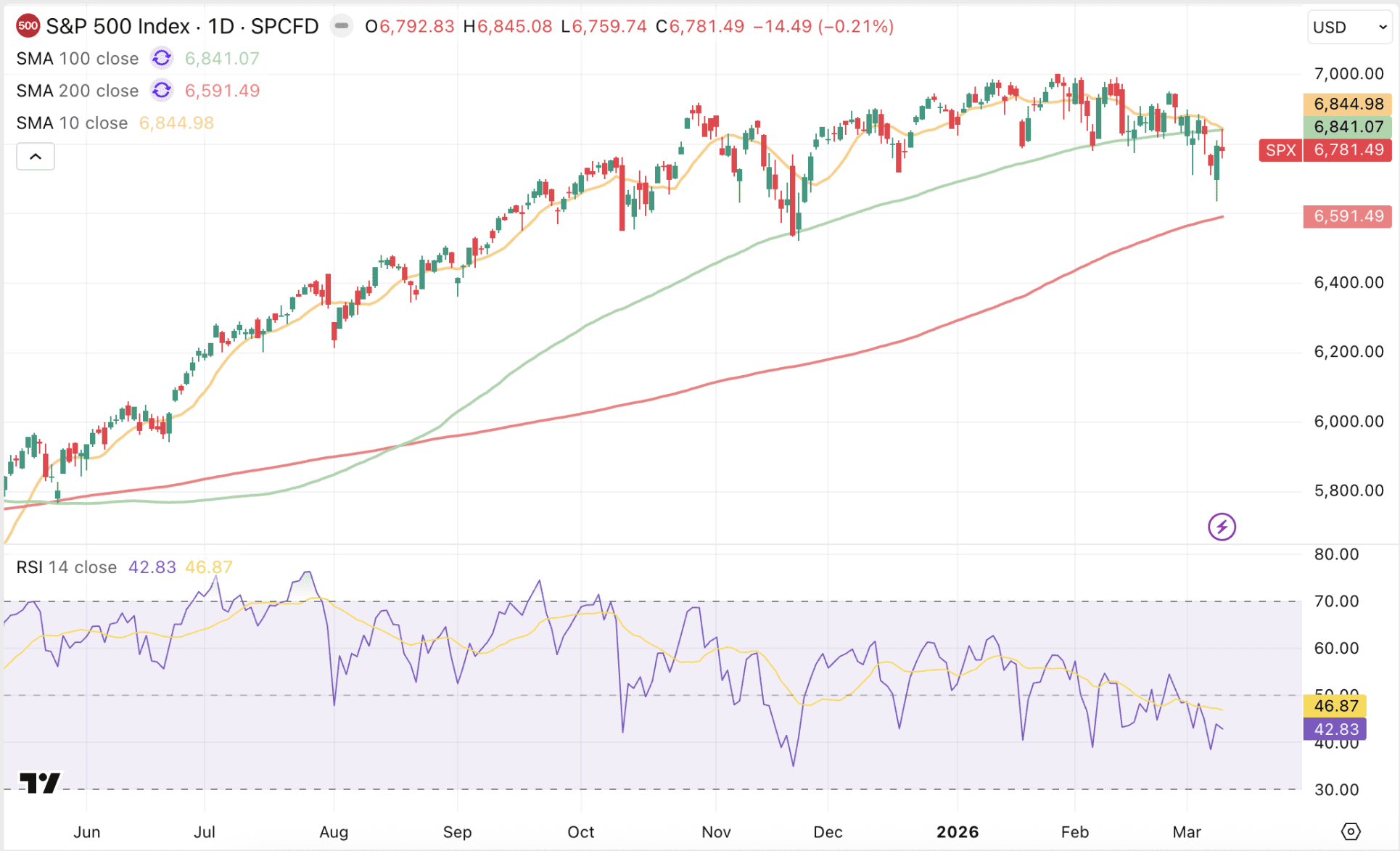Obwohl der S&P 500 nur wenige Prozent unter seinem Rekordhoch steht, hat der Index Schwierigkeiten, weiter zu steigen. Derzeit kämpft der S&P 500 um die Marke von 6.800 Punkten, die nun als Widerstand fungiert. Zudem zeigen wichtige technische Indikatoren nach unten.