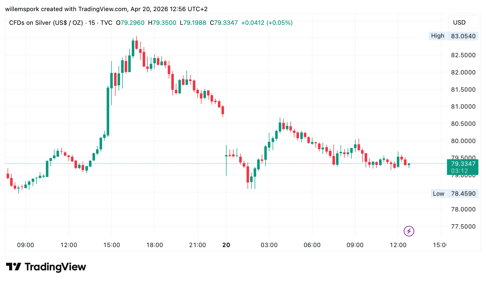 Edelmetalle geben damit einen Teil der jüngsten Gewinne wieder ab. Silber stieg am Freitag noch um über 6 Prozent auf mehr als 83 Dollar, angetrieben durch Hoffnung auf Deeskalation und die vorübergehende Wiedereröffnung der Straße von Hormus.