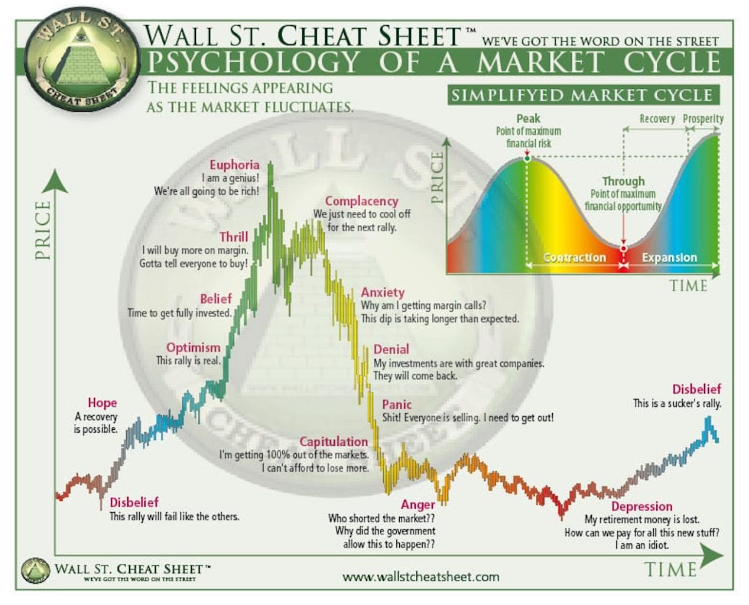 Die Psychologie von Marktzyklen zeigt, wie sich dieses Anlegerverhalten in den verschiedenen Phasen eines Marktes entfaltet. Ein Zyklus beginnt meist mit Optimismus, gefolgt von Enthusiasmus und schließlich Euphorie. Danach kippt die Stimmung: Angst, Panik und Verzweiflung übernehmen, wenn die Kurse einbrechen. In diesem Moment ist die Blase geplatzt.