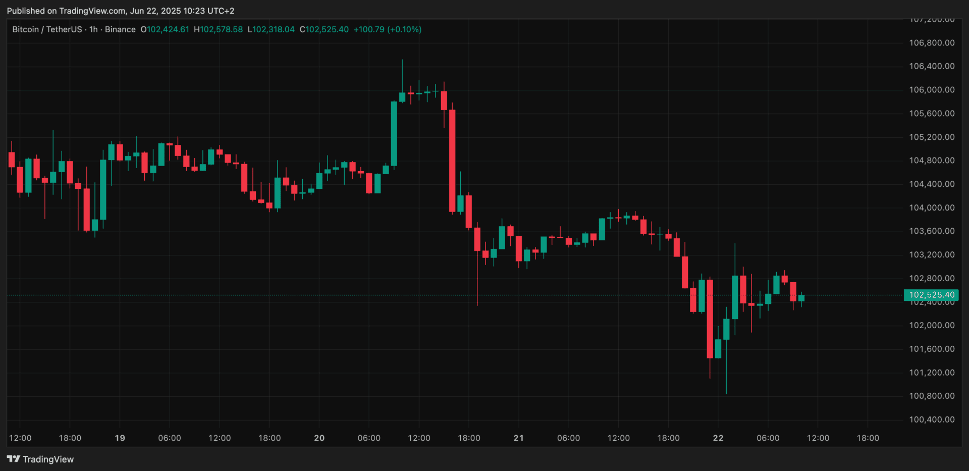 Der Bitcoin-Kurs machte Samstagabend einen scharfen Absturz, nachdem Donald Trump enthüllte, dass die USA drei iranische Nuklearanlagen bombardiert hatten. Der Preis fiel schnell auf 101.000 Dollar, erholte sich aber am Sonntagmorgen wieder etwas auf 102.400 Dollar. Der Markt bleibt angespannt, während Investoren die möglichen Folgen dieser Eskalation zu bewerten versuchen.