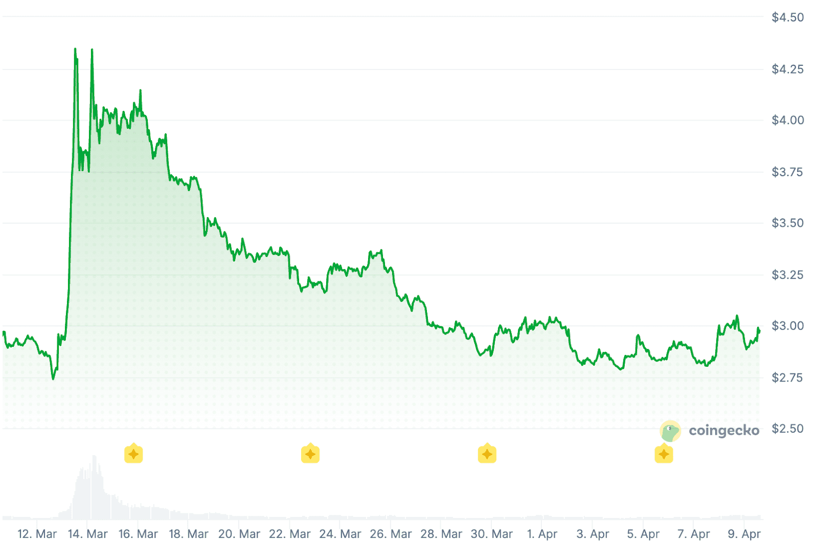 Die Ankündigung wurde bereits am 12. März gemacht und hatte sofort großen Einfluss auf den Kurs. Der Memecoin stieg innerhalb von 24 Stunden von etwa 2,74 Dollar auf einen Höchststand von rund 4,35 Dollar. Das entspricht einem Anstieg von fast 59 Prozent.