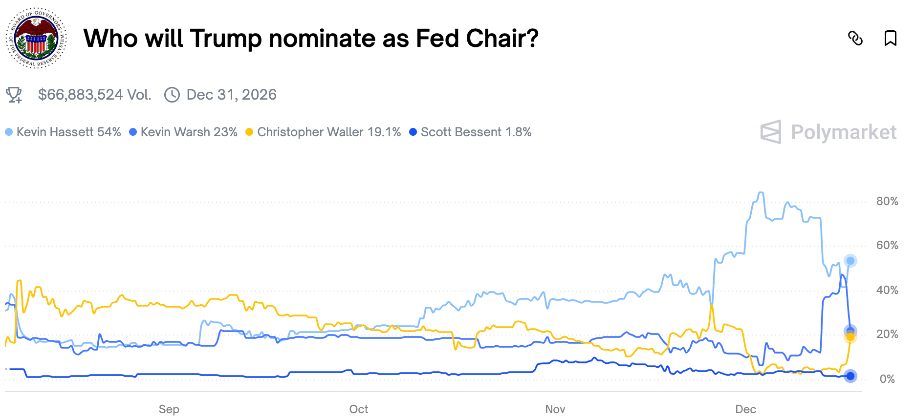 Trump führte bereits letzte Woche Gespräche mit Warsh. Auf der Vorhersageplattform Polymarket hat derzeit Hassett die besten Chancen, gefolgt von Warsh und danach Waller.
